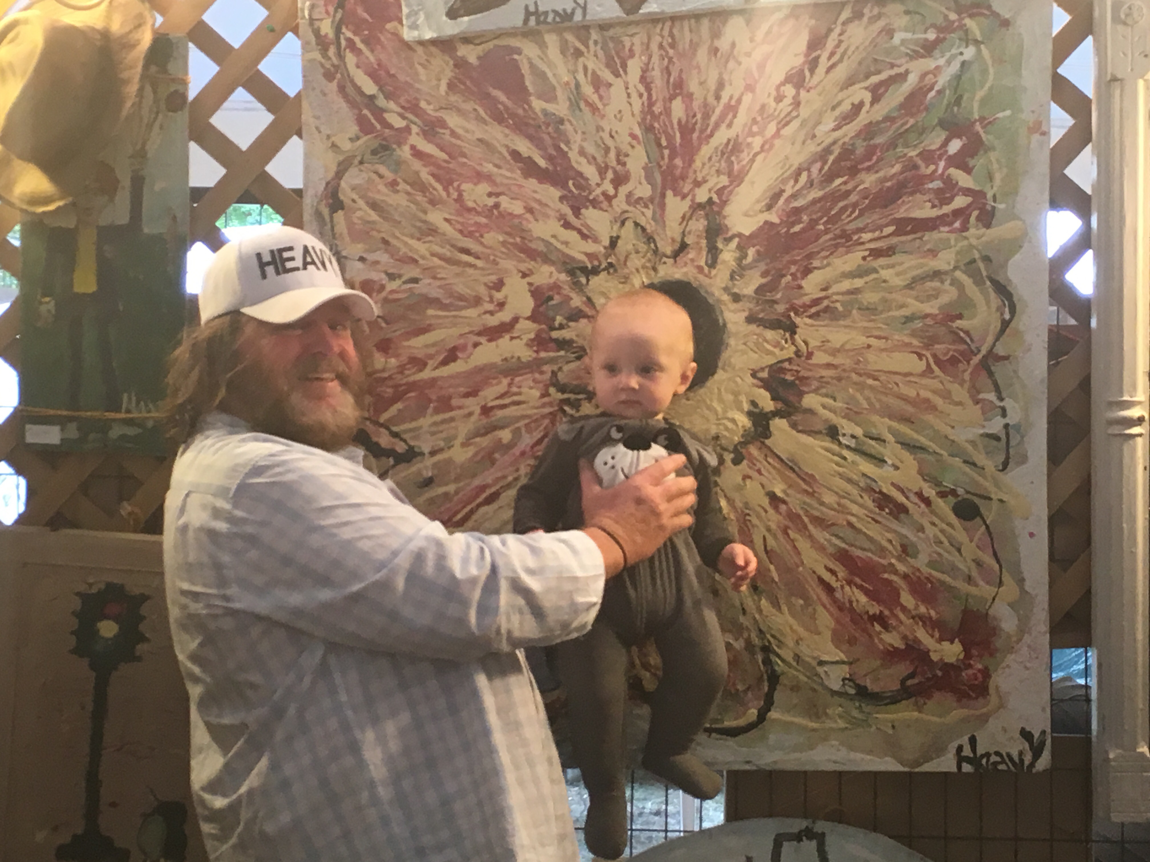 Here he is with Milo and a painting he calls the “Center of the Universe”. As he held Milo up in front of his sun painting for a photo Heavy said “look it’s an eclipse!”