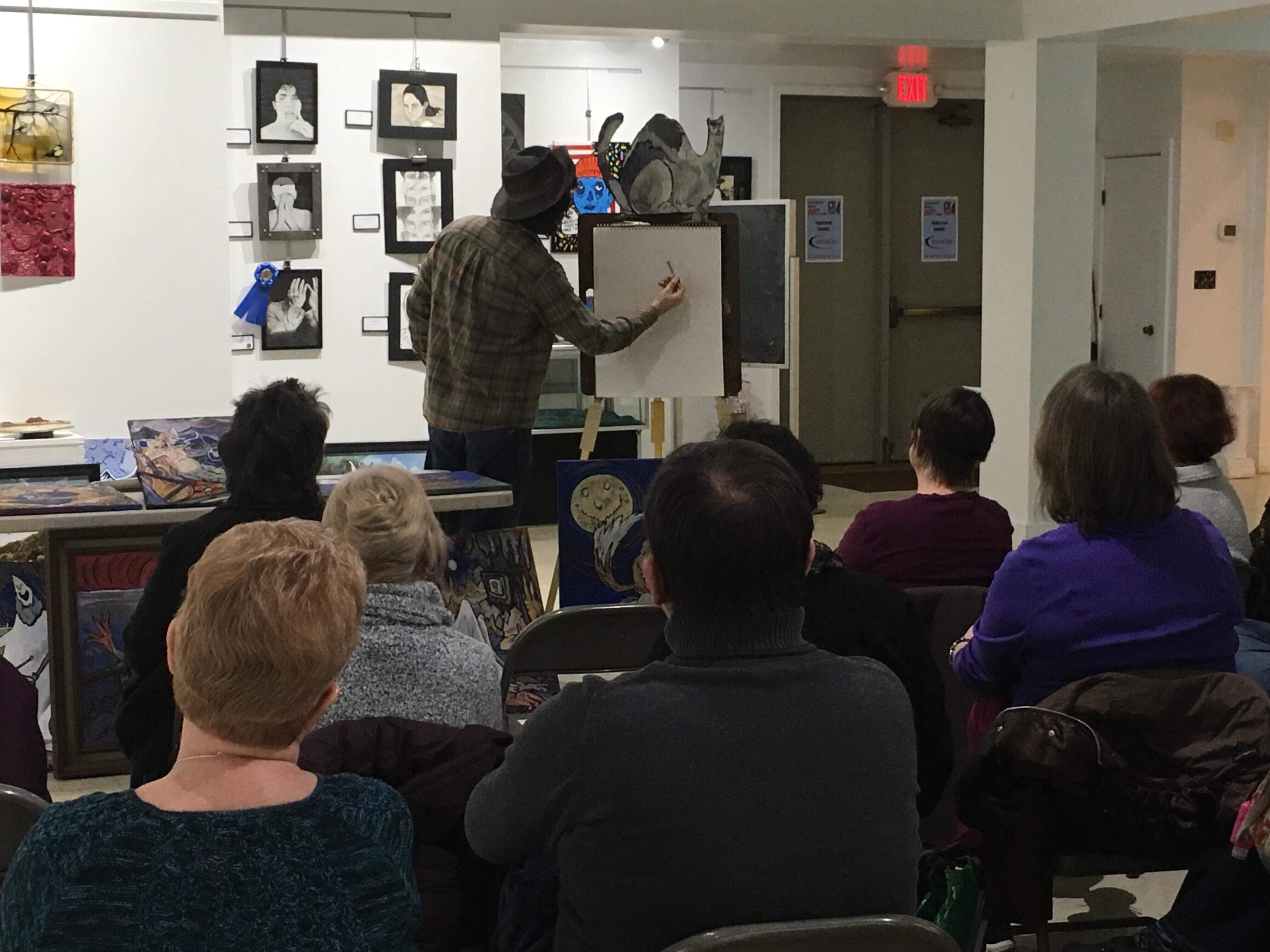 I was invited to speak with Chillicothe’s Art League and got to demo, display, and explain some of the stories behind my pictures–like this painting called Between Dog and Wolf. It’s about growing up and being in a transition from childhood to adulthood, and how my newborn son won’t let me sleep at night!