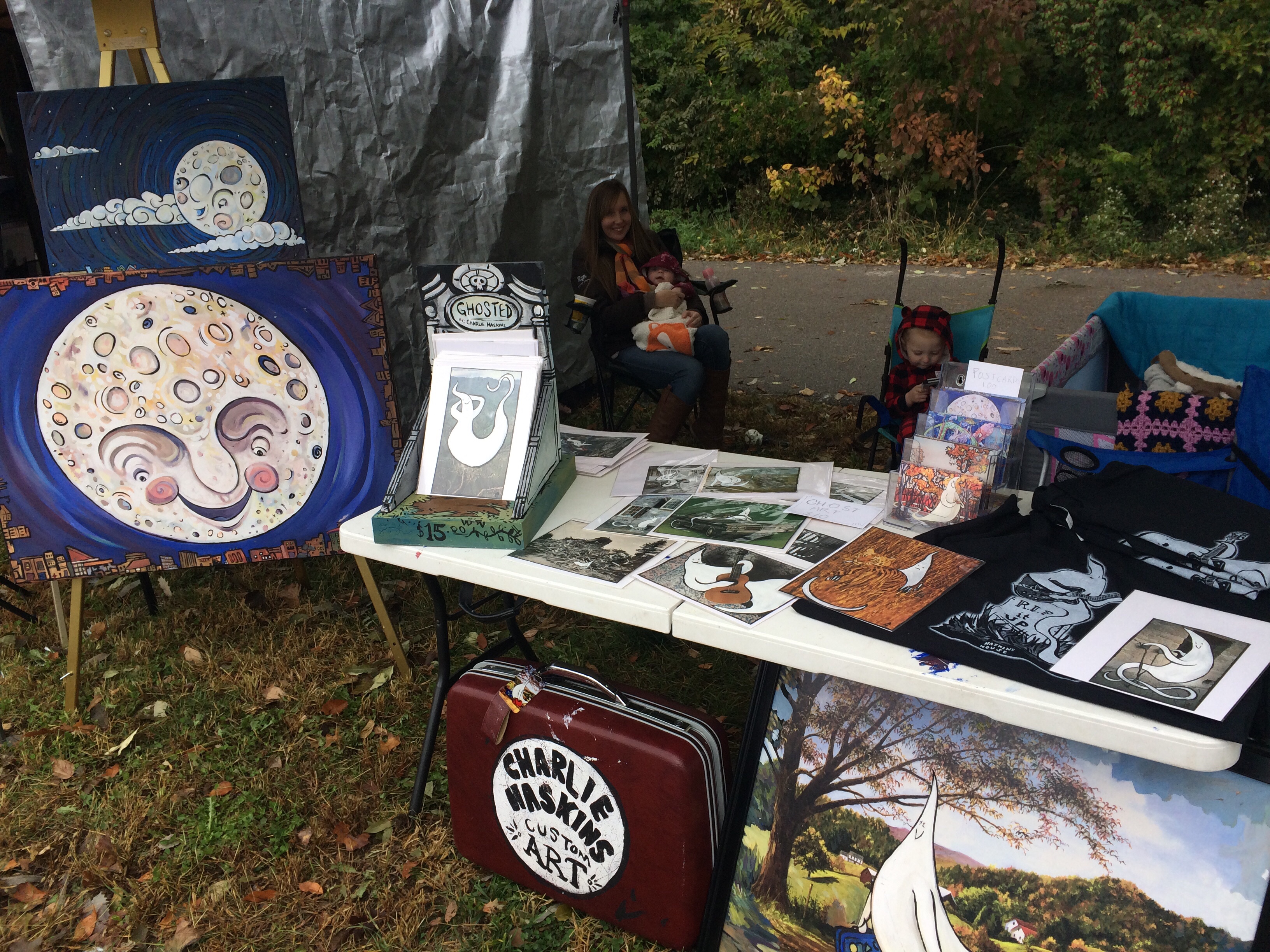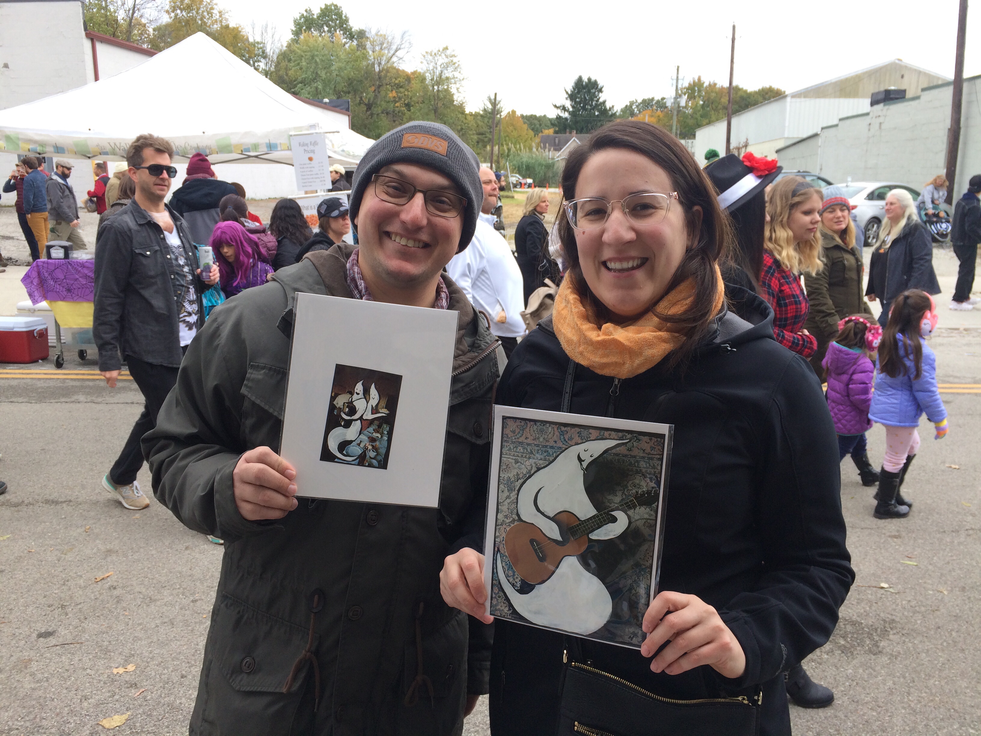Last month we painted Frankenstein at the Markay Theatre, painted a mural on 2nd St in Portsmouth, and setup at the Irvington Indiana Halloween Festival! This month we are releasing our Portsmouth calendar and a new book I made with musician Josiah Whitley called Moon Songs!