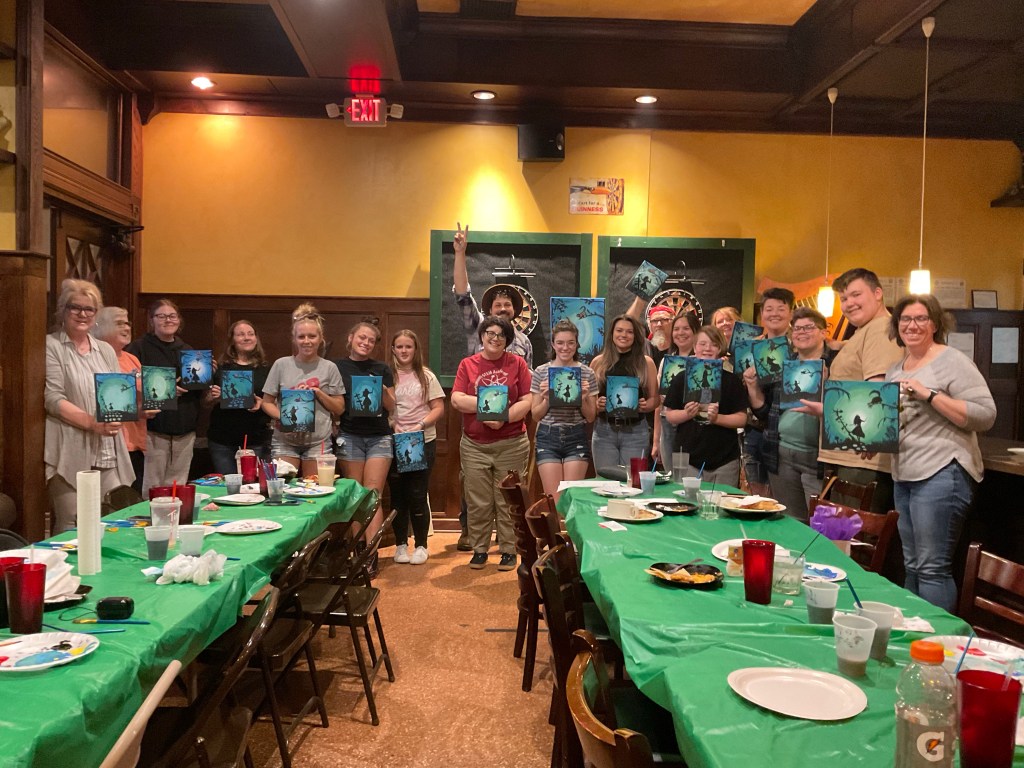 If you’d like to try a class for yourself, we are excited to announce some details about our next Port City Paint class! We’ll be painting a scene from the Hobbit, which promises to be another “fantasy-tastic” evening of creativity, laughter, and fun. Don’t miss out on the opportunity to create your own masterpiece on May 17th! Click the image below to reserve your ticket. 🐉 🧙♂️💍